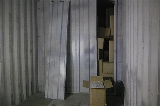Customs officers yesterday intercepted an incoming container truck declared to be empty at Lok Ma Chau Control Point. After X-ray examination and thorough inspection by Customs officers, about 1.1 million sticks of suspected illicit cigarettes in 83 carton boxes were found inside a false compartment of the container. The cigarettes were sorted and packed according to orders placed with a view to quick delivery to buyers.