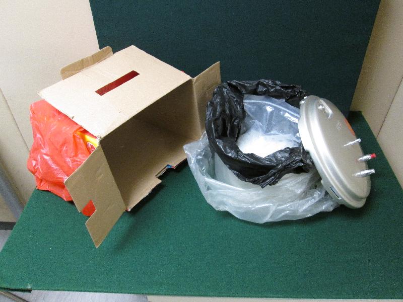 Customs officers intercepted an incoming passenger at Lo Wu Control Point for inspection yesterday morning and found the drugs concealed inside a pressure cooker carried by him.