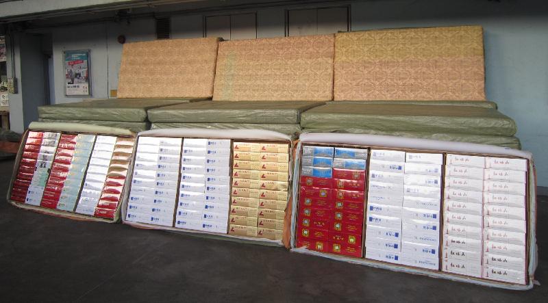 Then, Customs officers yesterday (November 21) intercepted an incoming lorry declared as containing furniture at Man Kam To Control Point. About 1.5 million suspected illicit cigarettes were found concealed in 62 mattresses mix-loaded with other goods on the vehicle. The 67-year-old male driver was arrested.