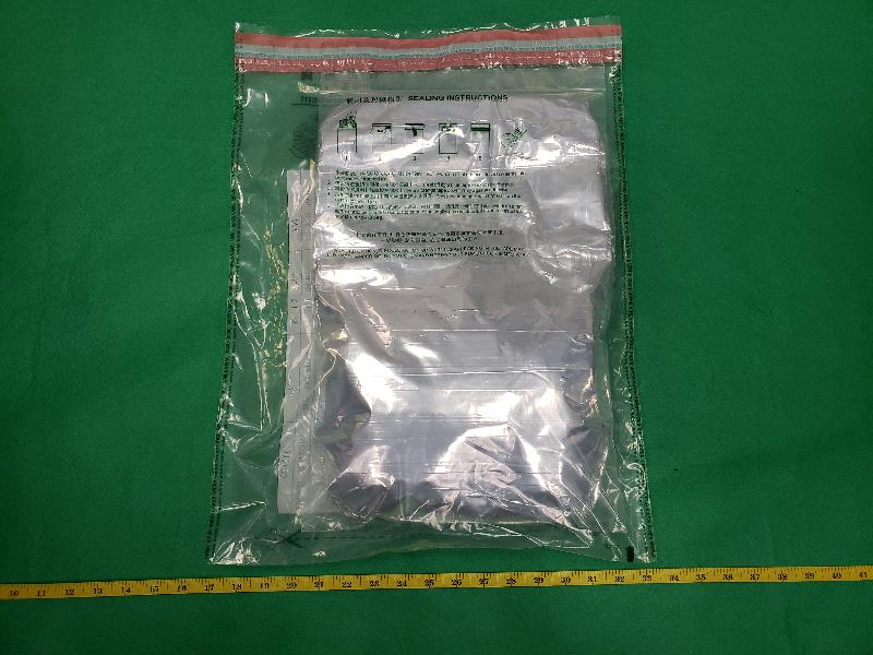 A 43-year-old female passenger arrived in Hong Kong from Sao Paulo, Brazil via Addis Ababa, Ethiopia yesterday afternoon. During Customs clearance, 2.16 kilograms of suspected cocaine in one packet was found concealed inside the false compartment of her rucksack. The woman was then arrested.