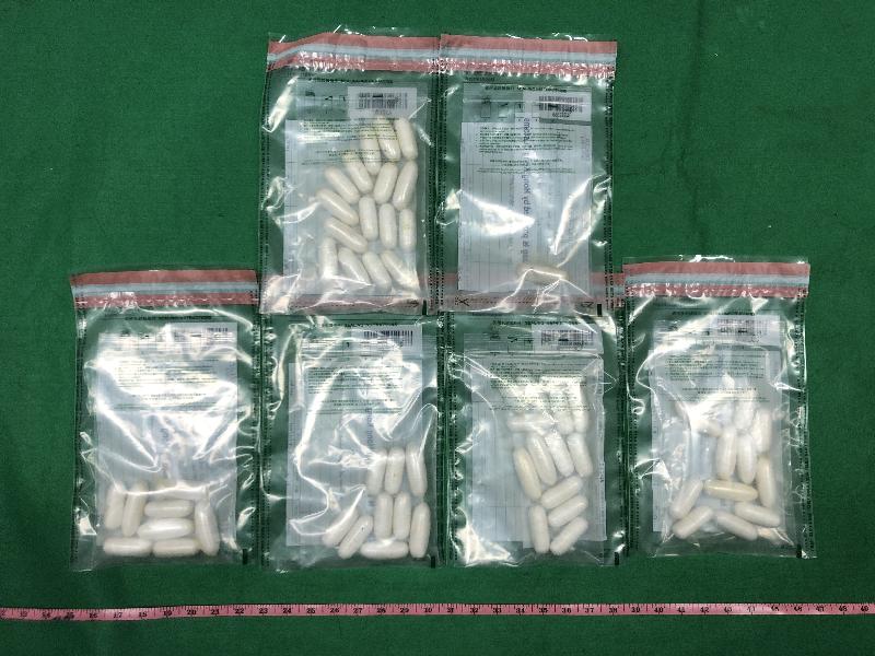 A 47-year-old male passenger arrived in Hong Kong from Johannesburg, South Africa this morning. During Customs clearance, the man discharged a batch of suspected cocaine. He was then arrested. Customs officers later escorted the man to hospital and he later discharged another batch of suspected cocaine.