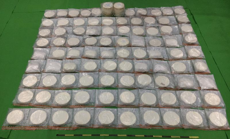 Customs then dismantled the parts of the two hydraulic devices with assistance from officers of the Fire Services Department and found a batch of suspected cocaine wrapped with plastic materials in each of the two devices. The total weight was about 110kg.