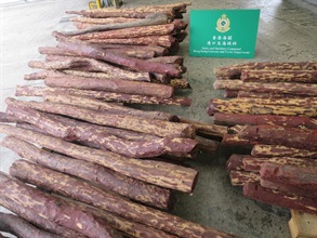 Hong Kong Customs today (July 9) detected a suspected sea cargo smuggling case and seized about 10 600 kilograms of logs of suspected red sandalwood, an endangered species, from a container at the Kwai Chung Customhouse Cargo Examination Compound. The total value of the seizure was about $6.6 million.