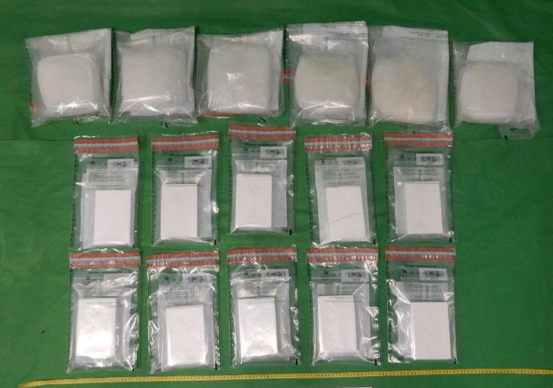 Hong Kong Customs yesterday (December 12) seized about 3.8 kilograms of suspected heroin and 6 kilograms of suspected methamphetamine with an estimated total market value of about $5.9 million at Hong Kong International Airport.