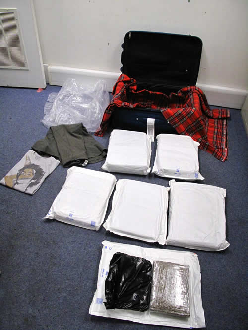 Customs officers yesterday morning at the airport conducted inspection on two South Africans, including a man and a woman, arriving from Johannesburg, South Africa, and found a total of 30 kg of herbal cannabis from their luggage.