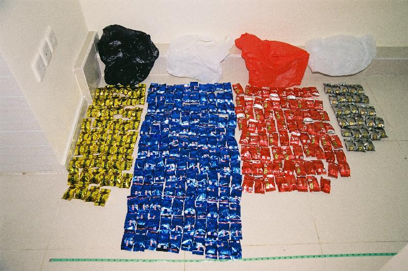 Officers of the Customs Drug Investigation Bureau yesterday intercepted a man in Tai Wai, and found in his rucksack a total of 0.5 kilograms of suspected cannabis buds that were concealed inside tea packets. The man was later escorted for a search in a residential premises nearby and on a light goods vehicle. A total of about 3.9 kilograms of suspected cannabis buds and a batch of drug packaging paraphernalia were seized subsequently.