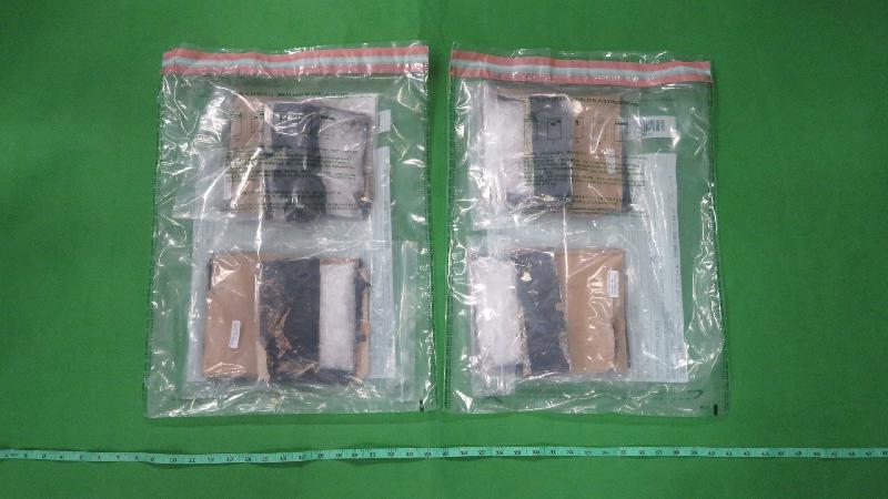 Hong Kong Customs seized a total of about 800 grams of suspected methamphetamine and 1.4 kilograms of suspected liquid cocaine with an estimated market value of about $1.95 million at Hong Kong International Airport on December 26.