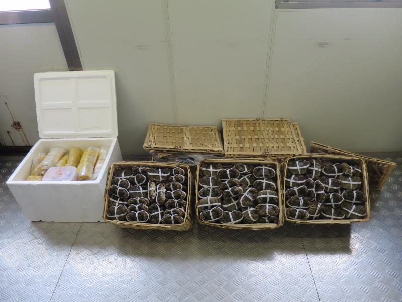 C&ED officers intercepted an incoming private car at Lok Ma Chau Control Point for inspection yesterday morning and seized a total of 369 suspected smuggled hairy crabs from 5 baskets and 21 kilograms of crab meat from one foam box in the vehicle. The 46-year-old male driver was arrested and has been put on bail pending further investigation. Investigation is ongoing.