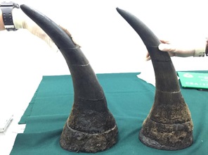 Hong Kong Customs detected the smuggling of suspected rhino horns in three express air parcels at Hong Kong International Airport on July 27. A total of 10 suspected rhino horn slabs weighing 6.71 kilograms, with an estimated value of about $1.34 million, was seized.