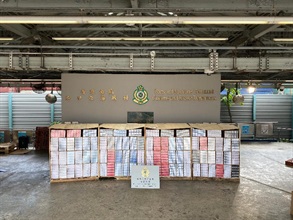 Also, during an anti-illicit cigarette operation conducted in Yuen Long today, Customs officers seized about 1.8 million suspected illicit cigarettes at a residential unit in the district and arrested a 40-year-old man suspected to be in connection with the case. A light goods vehicle suspected to be involved was also detained. Customs believes that a suspected illicit cigarette storehouse was raided during the operation.