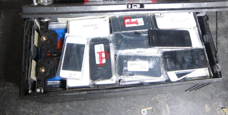 Customs officers found 248 smartphones, with an estimated value of about $1 million, concealed in false compartments inside two battery cases of a lorry at Lok Ma Chau Control Point on July 7 and arrested a 48-year-old male driver.