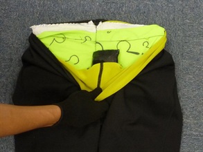 A woman arrived at Hong Kong from Bogota, Colombia, via Paris, France yesterday (August 8). During Customs clearance, Customs officers found her gait unnatural. Upon further checking, about 1.65 kilograms of suspected cocaine valued at $2.1 million were found concealed inside a tailor-made underwear she was wearing. The woman was arrested at the scene. Upon follow-up investigation, two other women were arrested in Tsim Sha Tsui yesterday.