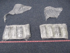 In addition, Customs officers arrested an incoming female passenger at Hong Kong International Airport today (August 9) and seized about two kilograms of suspected cocaine with an estimated market value of about $2.5 million.