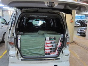 Customs identified a syndicate using cross-boundary private cars to smuggle illicit cigarettes and quickly distribute them to peddlers. Customs officers took enforcement action last night and intercepted a cross-boundary private car in Tin Shui Wai. A total of about 110 000 sticks of suspected illicit cigarettes were found in the vehicle. A 41-year-old male driver was arrested and the cross-boundary private car used in the suspected smuggling of illicit cigarettes was detained. Investigation is ongoing.
