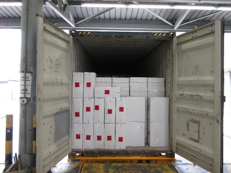 Hong Kong Customs smashed a suspected smuggling case involving illicit cigarettes yesterday (November 3) at Kwai Chung Customshouse Cargo Examination Compound. About 7.7 million sticks of suspected illicit cigarettes were seized. The market value of the cigarettes was about $21 million with a duty potential of about $15 million.