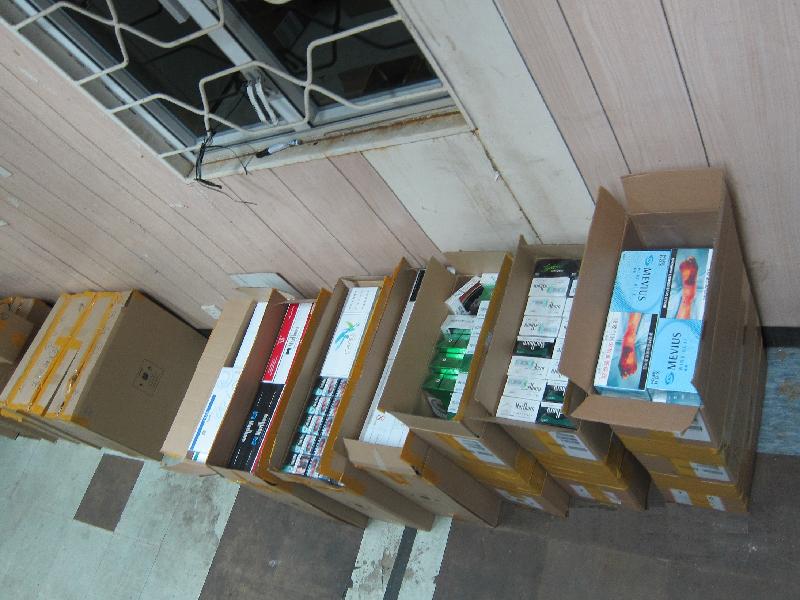 Hong Kong Customs yesterday (October 28) smashed a suspected illicit cigarette storehouse in Yuen Long and seized about 89 000 sticks of suspected illicit cigarettes. The total value of the seizure was about $220,000, with a duty potential of about $170,000.