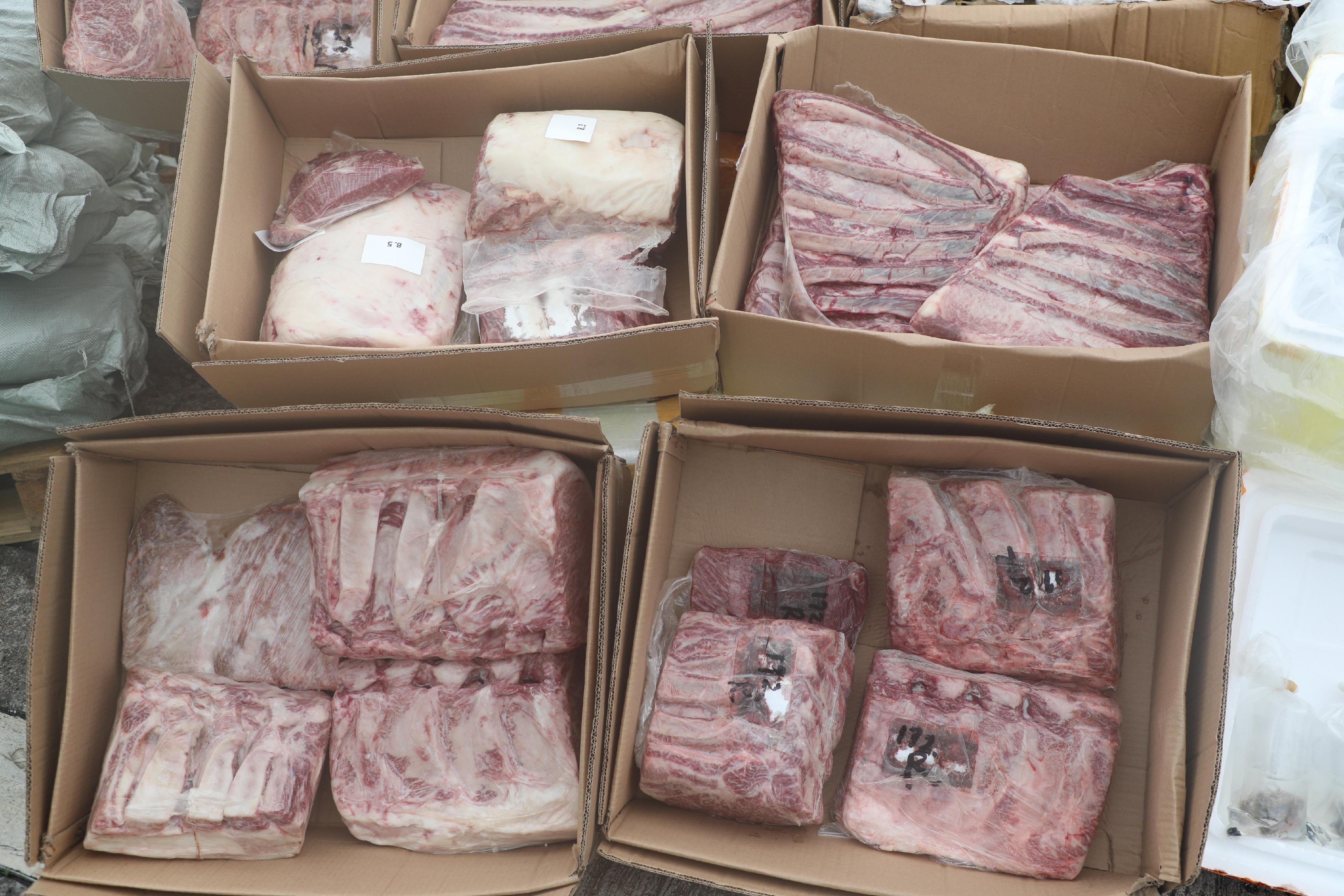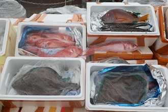 During the operation, Customs officers spotted a suspicious cargo vessel heading towards Mainland waters from the waters off Cheung Chau. Several men were seen dealing with cargoes on board. Suspecting them of participating in smuggling activities, Customs officers immediately took action and intercepted the cargo vessel. The suspected smuggled goods involved in the case were seized on board, including fruits and vegetables, chilled fish, frozen meat and suspected scheduled live corals.