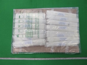 Hong Kong Customs detected three drug trafficking cases through the air cargo channel between November last year and June this year. A total of about 11 kilograms of suspected cocaine and about 685 grams of suspected heroin with an estimated market value of about $16.2 million were seized at Tsing Yi and Hong Kong International Airport. A man suspected to be connected with the cases was arrested yesterday (June 3).
