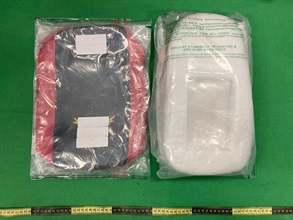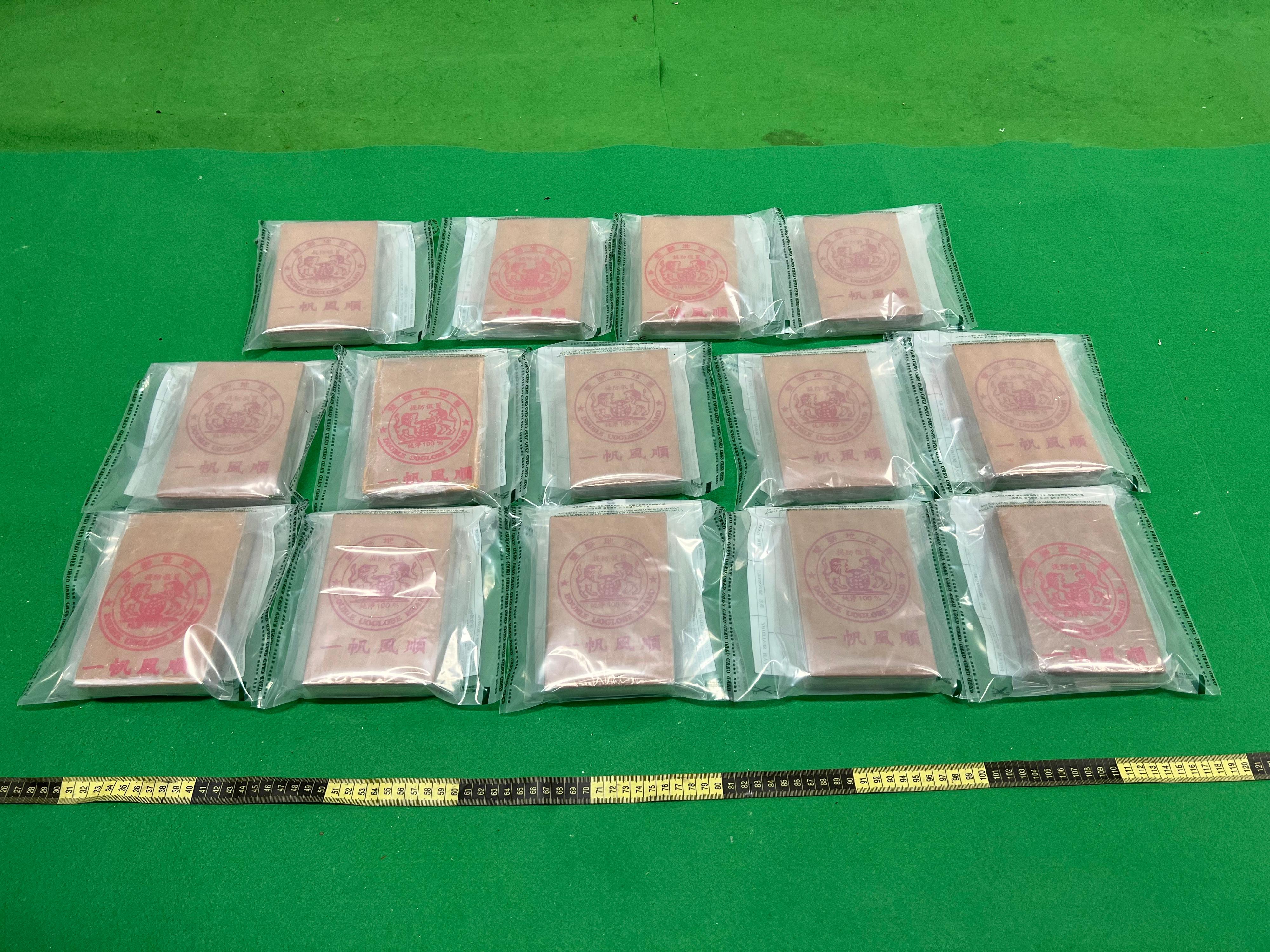 Through risk assessment, Customs on that day inspected an air consignment, declared as carrying boxing accessories, arriving in Hong Kong from Thailand at the airport. Upon inspection, Customs officers found the batch of suspected heroin concealed inside 14 kick pads.