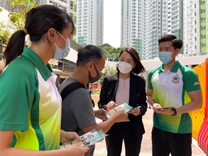 Moreover, Customs also deployed officers to conduct publicity campaigns at newly established public housing estates in Tuen Mun District to remind members of the public about common unfair trade practices in renovation services. Some tips and key points on procurement of renovation services were also provided. At the same time, Customs officers also promoted compliance with the renovation traders to remind them to comply with the TDO.
