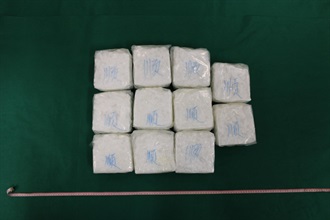 Hong Kong Customs yesterday (September 28) seized about 11 kilograms of suspected methamphetamine with an estimated market value of about $6.7 million in Sheung Shui. A man was arrested.
