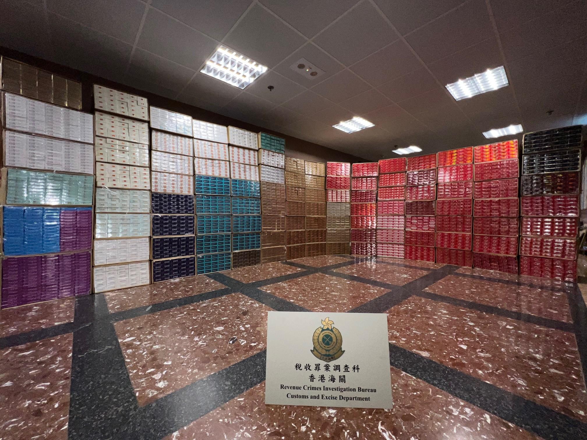 Hong Kong Customs on October 24 raided a suspected illicit cigarette storage centre and seized about 1.2 million suspected illicit cigarettes with an estimated market value of about $3.2 million and a duty potential of about $2.3 million in Fo Tan.