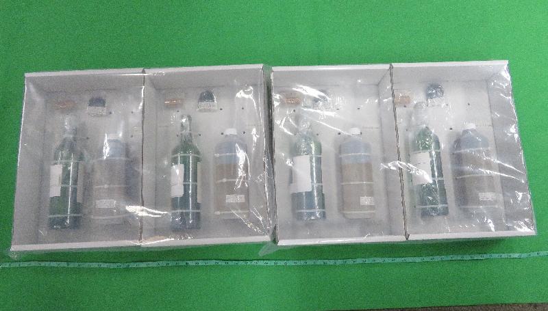On February 3 this year, Customs officers also inspected an air postal parcel, declared as carrying red wine, arriving in Hong Kong from France and found the batch of suspected liquid ketamine concealed inside four red wine bottles.