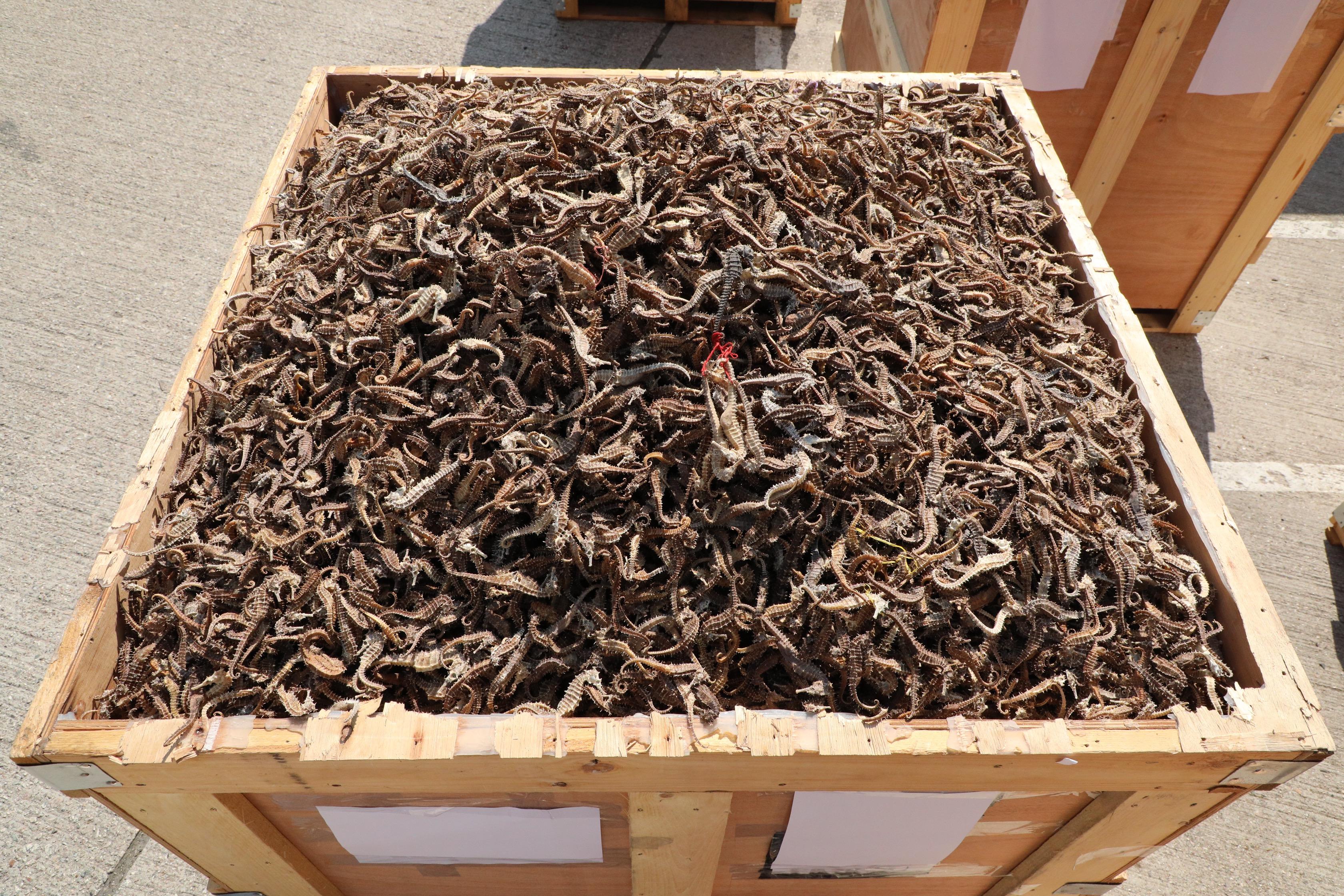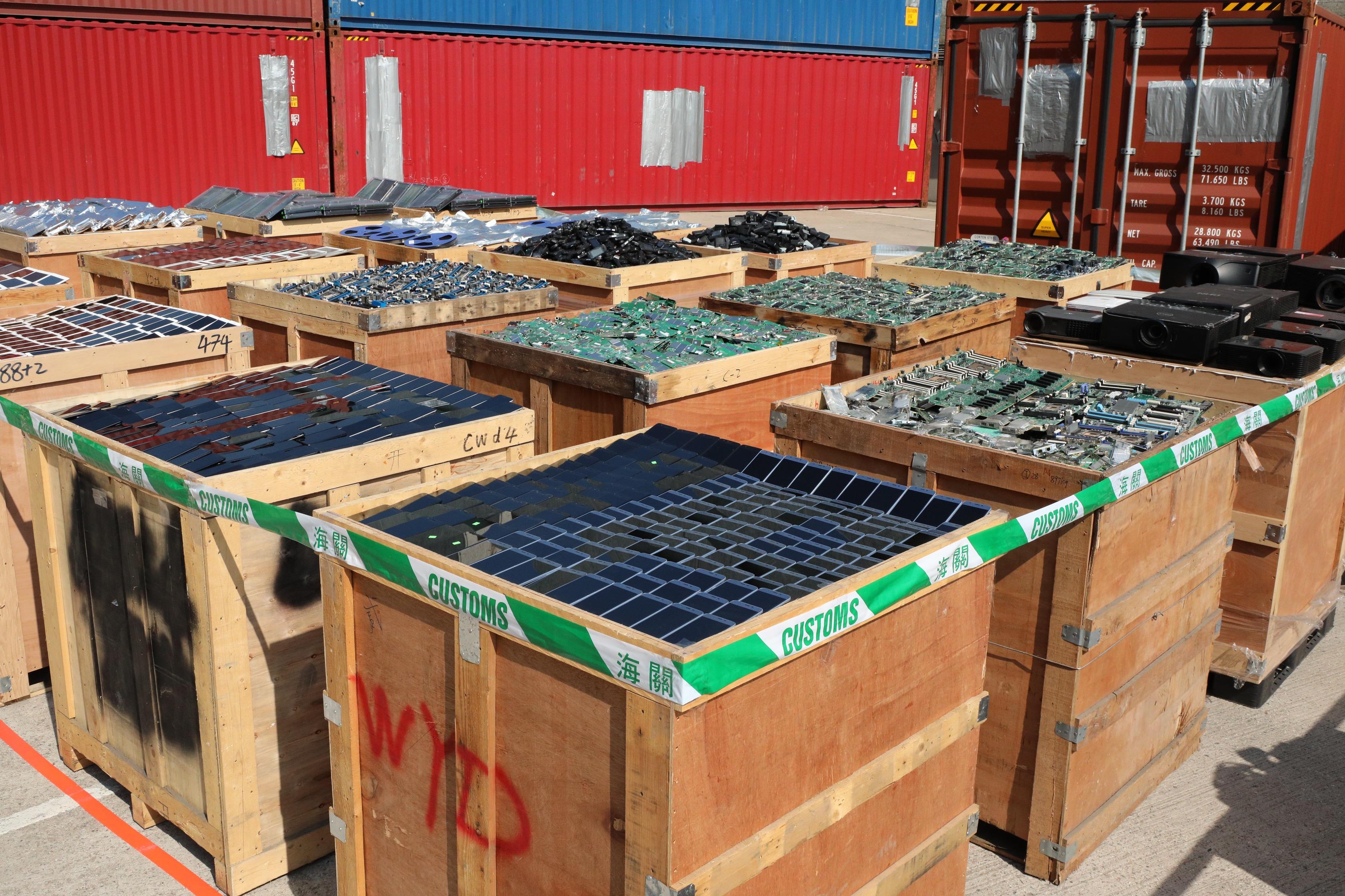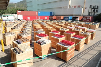 ​Hong Kong Customs on December 11 and 12 mounted a special enforcement operation codenamed "Convoy" and detected two suspected cases of using ocean-going vessels to smuggle goods to the Mainland at Tsing Yi Container Terminal. A large batch of suspected smuggled goods, including expensive food ingredients, electronic goods, vinyl records, table wines, medicine and scheduled endangered species, with a total estimated market value of about $200 million was seized.