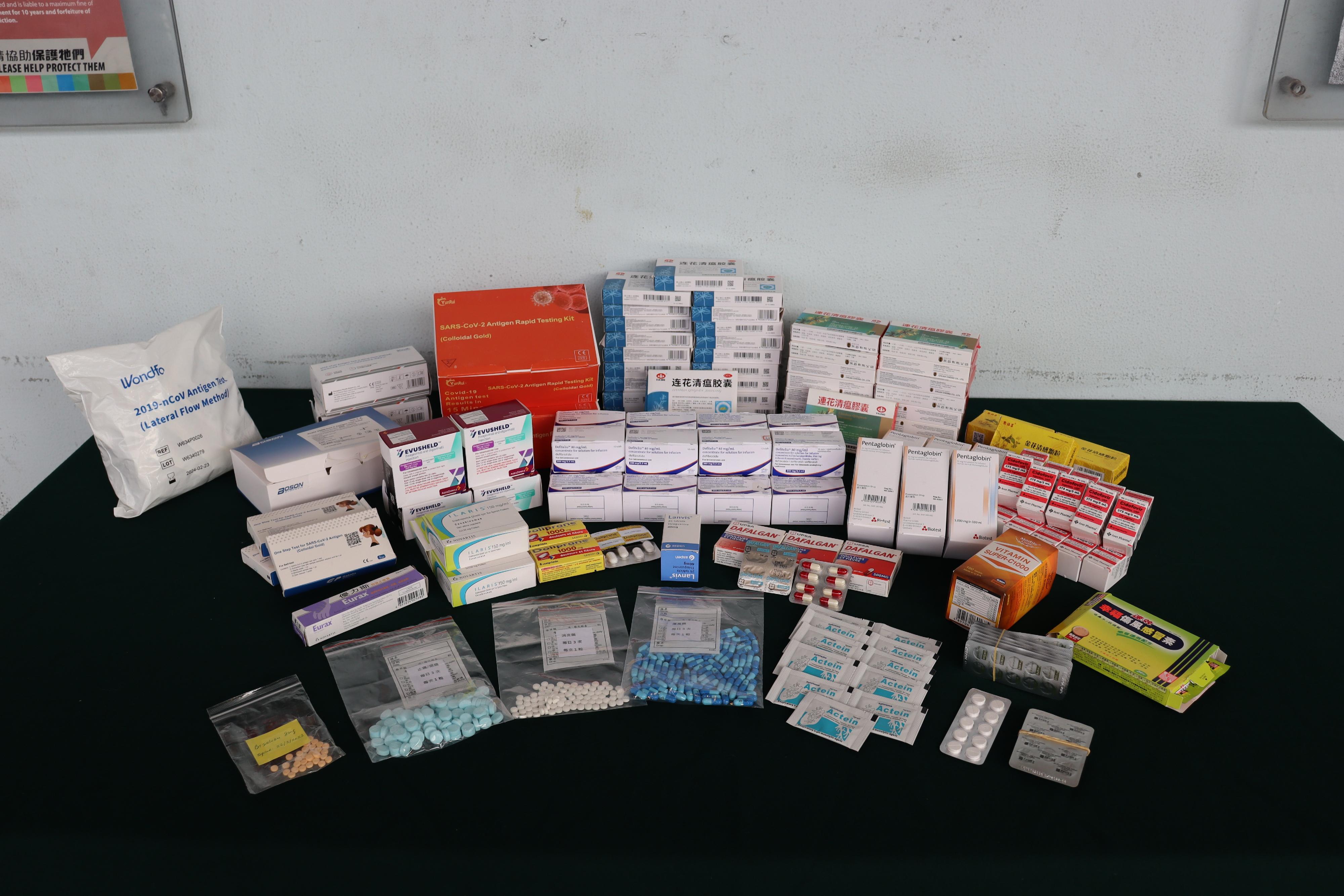 During the operation, Customs detected five suspected smuggling cases involving cross-boundary goods vehicles at Shenzhen Bay Control Point, Man Kam To Control Point and Lok Ma Chau Control Point and seized a batch of suspected smuggled medicines and anti-epidemic supplies, including proprietary Chinese medicines, pharmaceutical products, rapid-antigen test kits, fever patches and thermometers, with an estimated market value of about $940,000. The quantity of the smuggled goods was over 3 900.