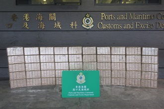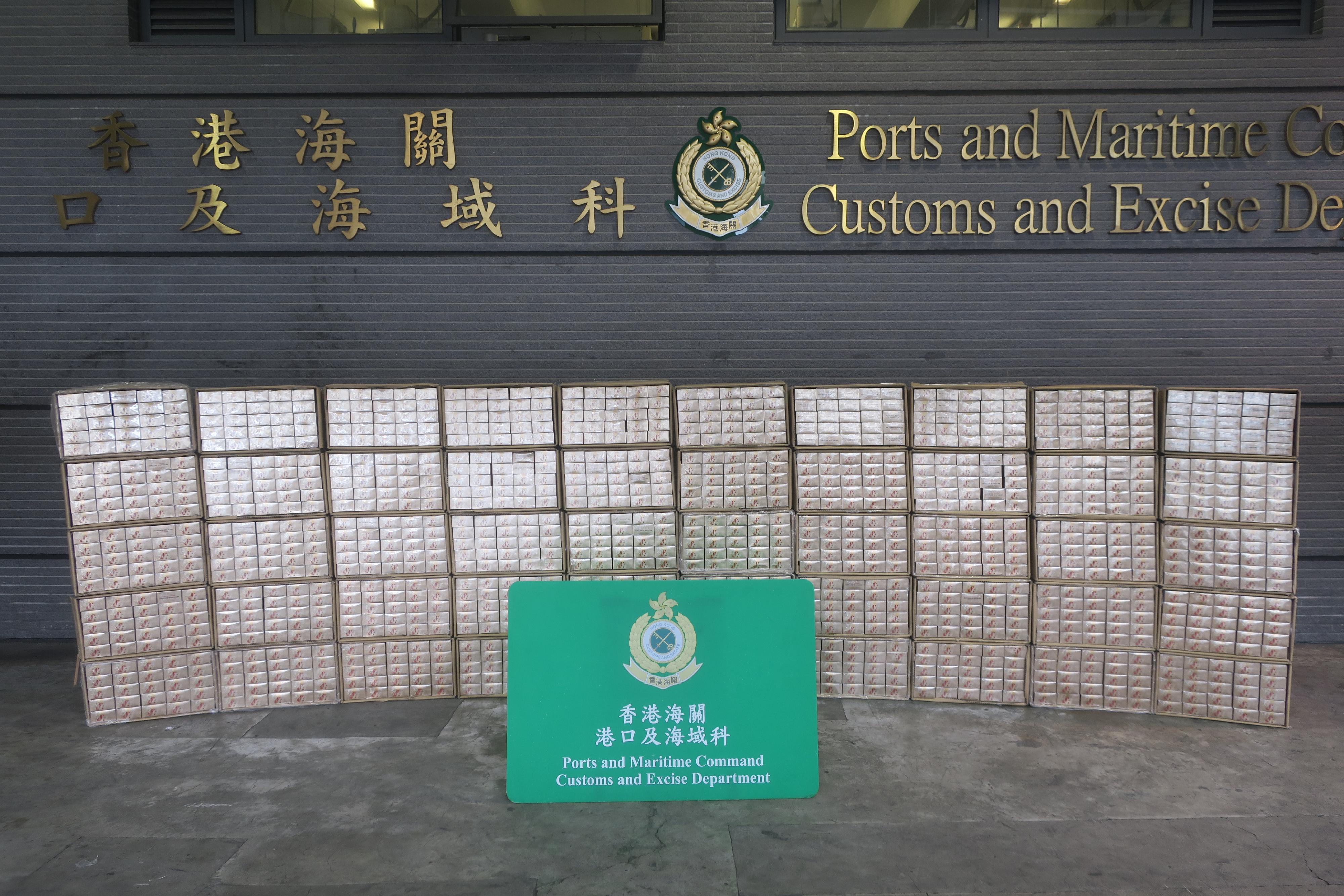 Through risk assessment, Customs yesterday selected for inspection two 20-foot containers, both declared as carrying ceramic tableware, arriving in Hong Kong from Ningbo, the Mainland for re-exporting to Australia. Upon inspection, Customs officers found that each of the two containers had concealed about 500 000 suspected illicit cigarettes.