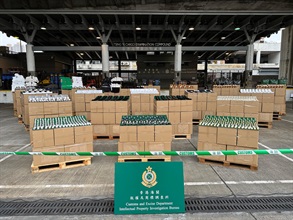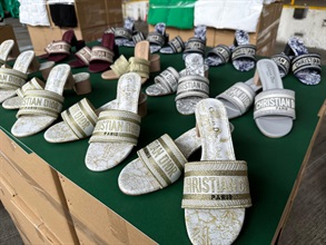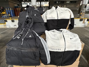 On the same day, Customs officers raided an industrial building unit in Kwun Tong. About 400 items of suspected counterfeit sports shoes and clothing were seized. A 29-year-old female consignee and a 48-year-old female were arrested.