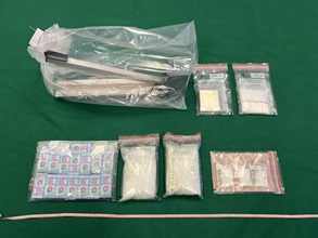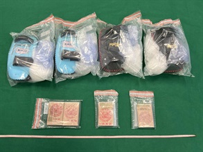 Customs officers subsequently mounted a controlled delivery operation yesterday and arrested a 14-year-old male youth and a 14-year-old female youth suspected to be connected with the case in Kwun Tong. Later, the officers searched a residential premises in the same district, which was the home unit of the 14-year-old male youth, and seized about 3kg of suspected methamphetamine and a batch of suspected drug packaging paraphernalia inside the premises. A 15-year-old male youth was also arrested at the premises.