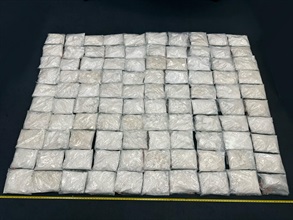 Through risk assessment, Customs on that day inspected an air cargo consignment, declared as carrying a milling machine, arriving in Hong Kong from Canada. Upon inspection, Customs officers found the batch of suspected methamphetamine concealed inside the milling machine. A 34-year-old local man suspected to be connected with the case was arrested.