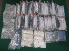 Upon an in-depth investigation, Customs officers targeted an industrial unit in Tsuen Wan, which was suspected to be a drug storage and packaging centre, and intercepted a man who was entering the unit yesterday afternoon. Upon inspection, the officers found 27 clothbags that had suspected heroin concealed inside the false compartments, while another batch of suspected heroin were put inside 20 plastic bags.