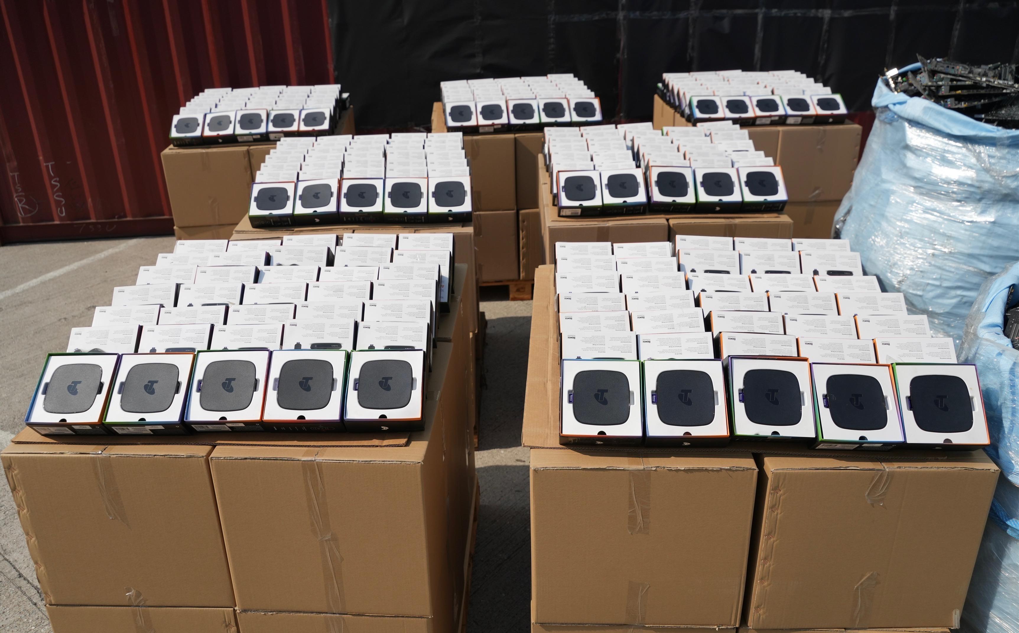 Upon inspection, Customs officers found inside two containers on board the vessel, which were declared as carrying aluminium alloy, a large batch of suspected smuggled goods, including over 13 tonnes of electronic waste, about 1 800 vehicle parts and about 1 600 TV set-top boxes.