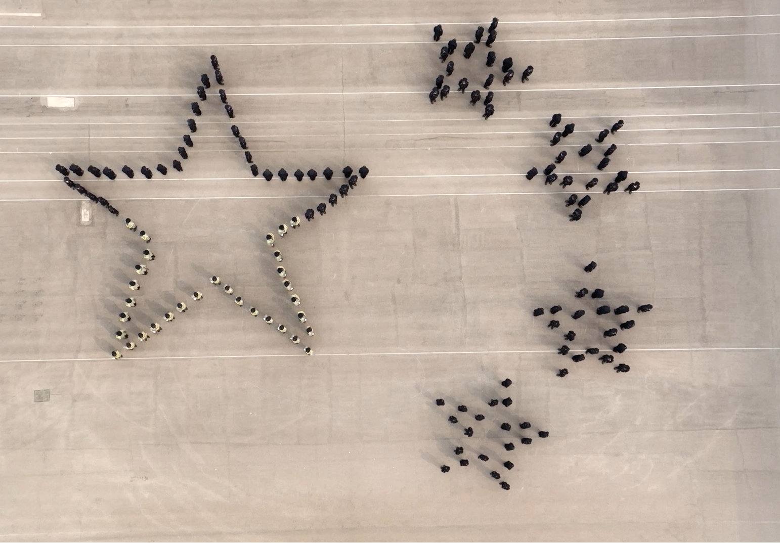 The Guard of Honour first assembled to form a sword and a key, symbolising Hong Kong Customs during the foot drill performance, then all passing-out officers assembled to form the "five stars" and a bauhinia flower symbolising China and the Hong Kong Special Administrative Region (HKSAR) respectively. This arrangement symbolised the passing-out officers bearing allegiance to the HKSAR and Hong Kong's role as a bridge connecting the Mainland and the world under the principle of "one country, two systems", as well as the essential role of telling the world the good stories of China and Hong Kong.