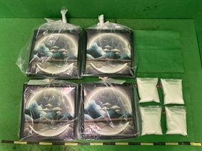 In the first case, through risk assessment, Customs on March 18 inspected an air consignment, declared as carrying decoration, arriving in Hong Kong from Frankfurt of Germany via Dubai of the United Arab Emirates at the airport. Upon examination, Customs officers found that suspected ketamine, weighing about 3.6kg in total, were concealed inside four paintings in the consignment.