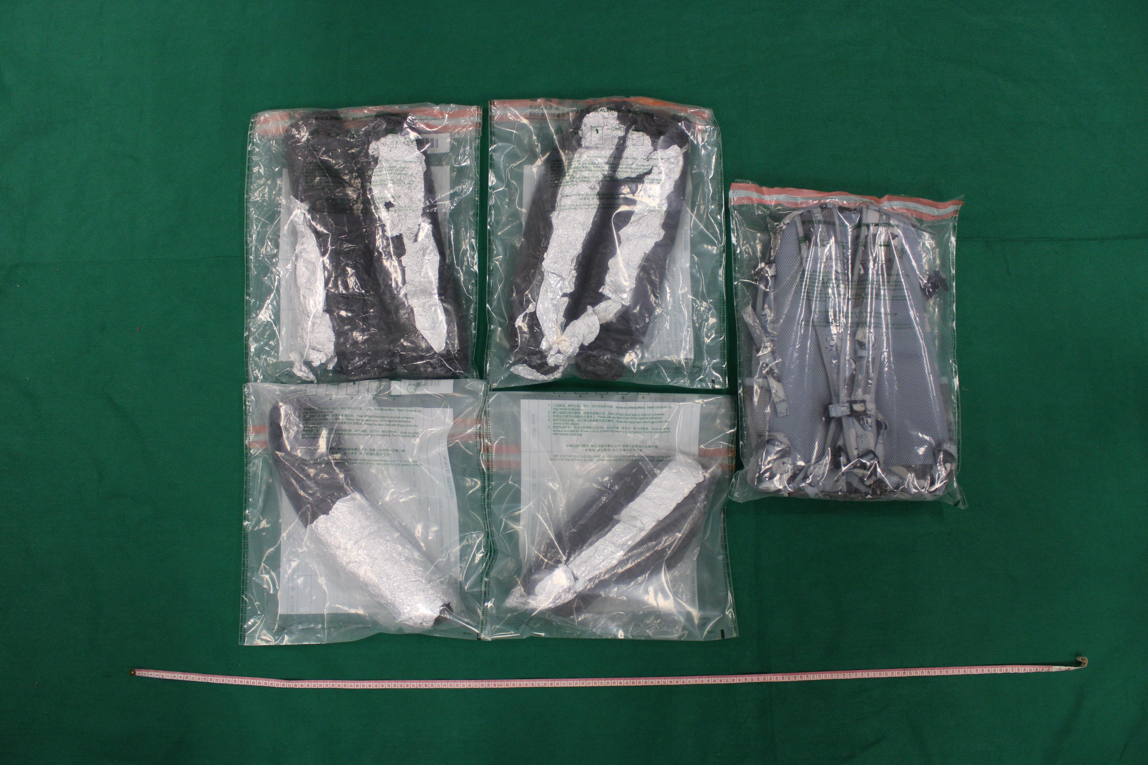 During an anti-narcotics operation conducted in the vicinity of Tuen Mun this afternoon, Customs officers intercepted a man and found the batch of suspected ketamine inside his rucksack. The 24-year-old man, who claimed to be a student, was subsequently arrested.