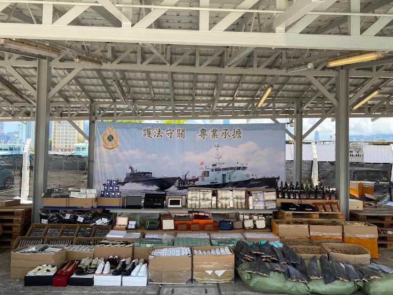 Hong Kong Customs yesterday (May 14) detected a suspected smuggling case using a fishing vessel and a speedboat in the waters off Hong Kong International Airport (HKIA). A large batch of suspected smuggled goods, including electronic products, high-value food and cosmetics, with an estimated market value of about $50 million in total was seized. This is the largest smuggling case detected by Customs so far this year.