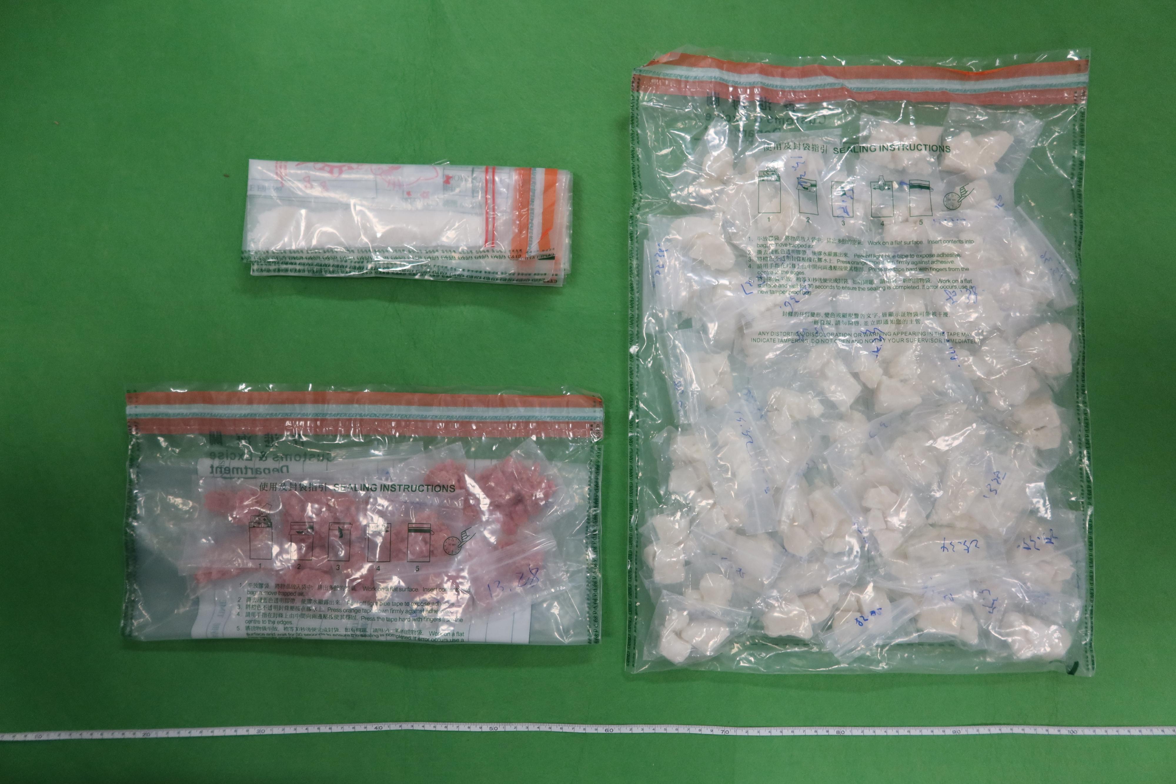 During an anti-narcotics operation conducted in the vicinity of Cheung Sha Wan this afternoon, Customs intercepted a man. Although no dangerous drugs were found on the man, Customs officers found him suspicious and thus escorted him to a nearby residential premises for a search. Upon inspection, the batch of suspected crack cocaine and suspected ketamine was seized inside the premises and the man was immediately arrested.