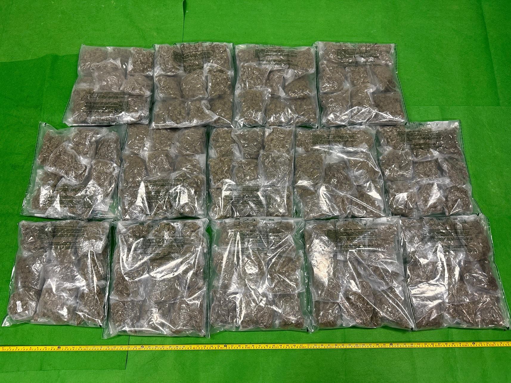 ​Hong Kong Customs on May 8 and 9 seized about 10 kilograms of suspected cannabis buds with an estimated market value of about $1.9 million at Hong Kong International Airport.