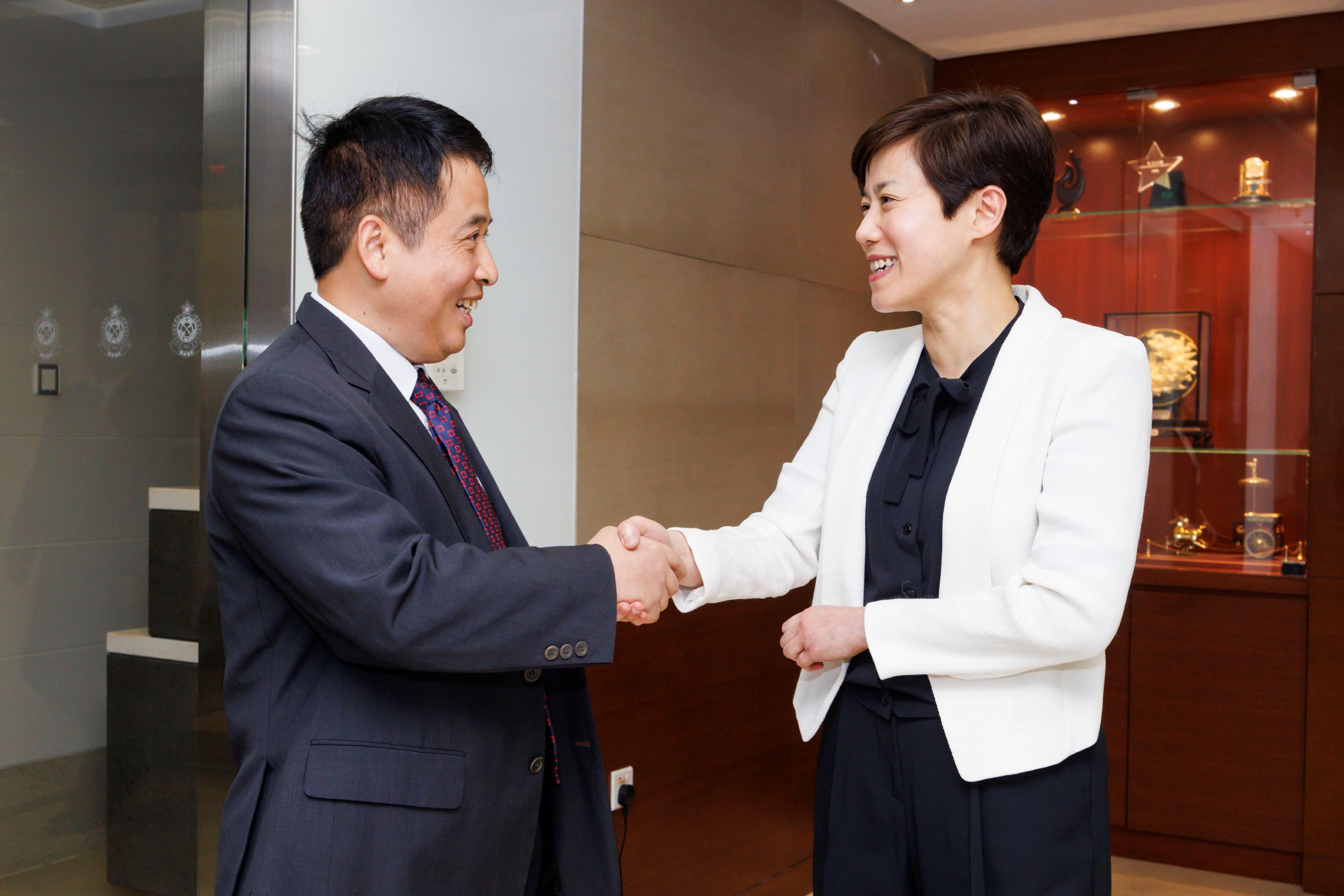 The Commissioner of Customs and Excise, Ms Louise Ho, today (May 18) met the Mayor of the Zhuhai Municipal Government, Mr Huang Zhihao, to exchange views on pressing ahead with the development of the new trade corridor of the Hong Kong-Zhuhai-Macao Bridge (HZMB) in the Customs Headquarters Building.