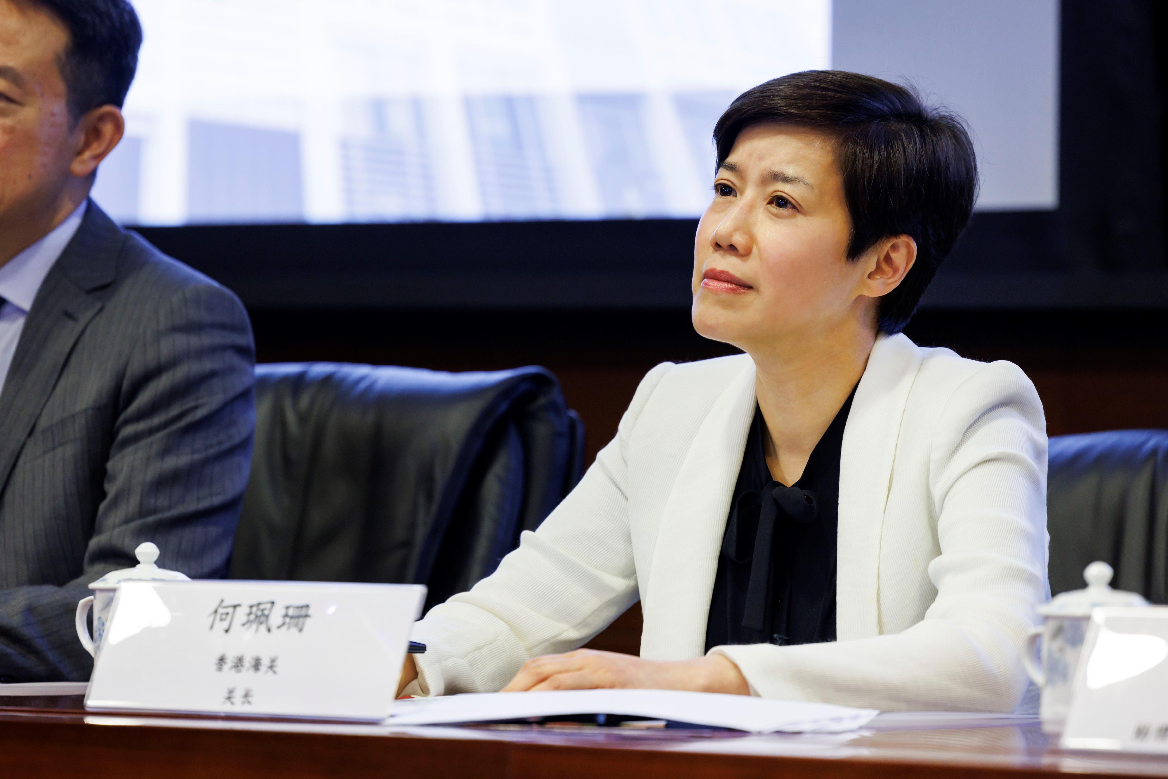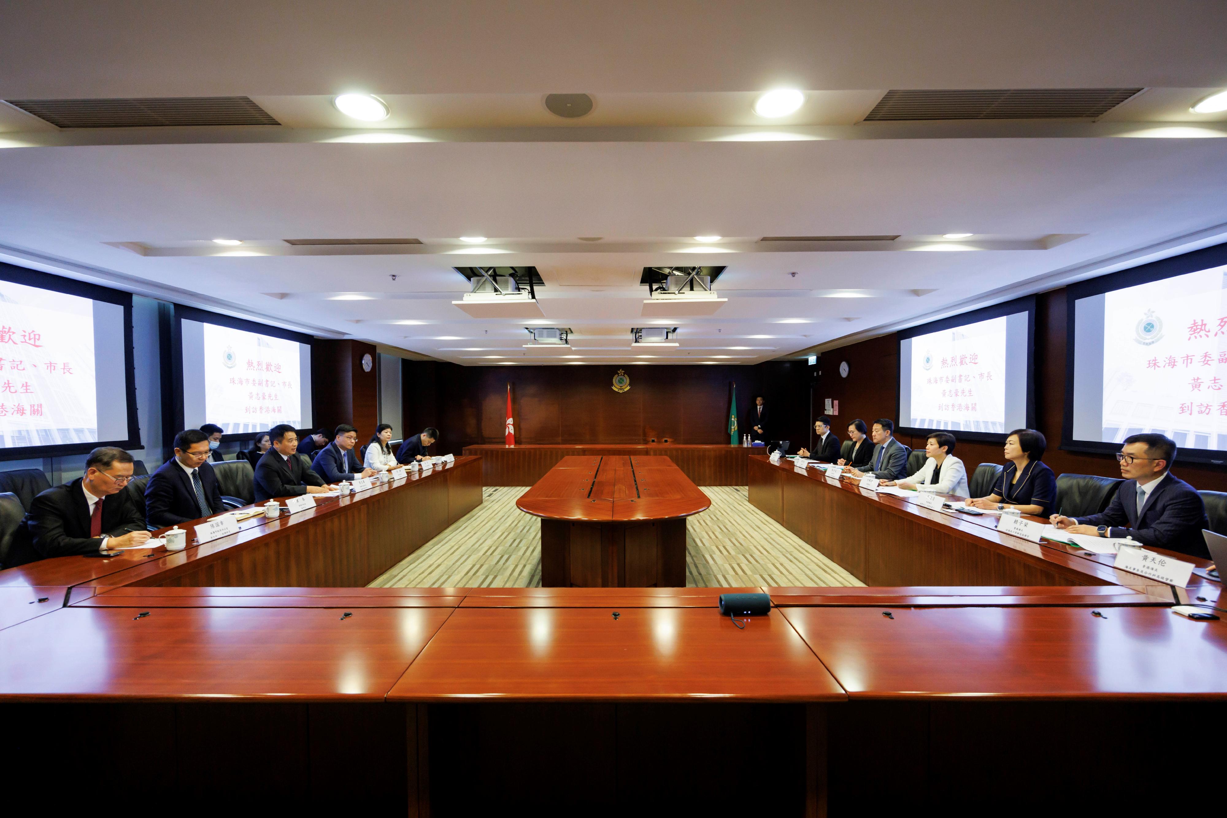 Ms Ho welcomed Mr Huang's visit to Hong Kong Customs with his delegation and chaired a meeting with the delegation of the Zhuhai Municipal Government. During the meeting, they discussed multiple issues, including promotion of cargo shipment among Guangdong, Hong Kong and Macao, and better utilisation of clearance facilitation measures of the HZMB, with an aim to enhance and uphold Hong Kong's position as an international logistics hub and to bring opportunities for the cargo logistics development of the Guangdong-Hong Kong-Macao Greater Bay Area (GBA).