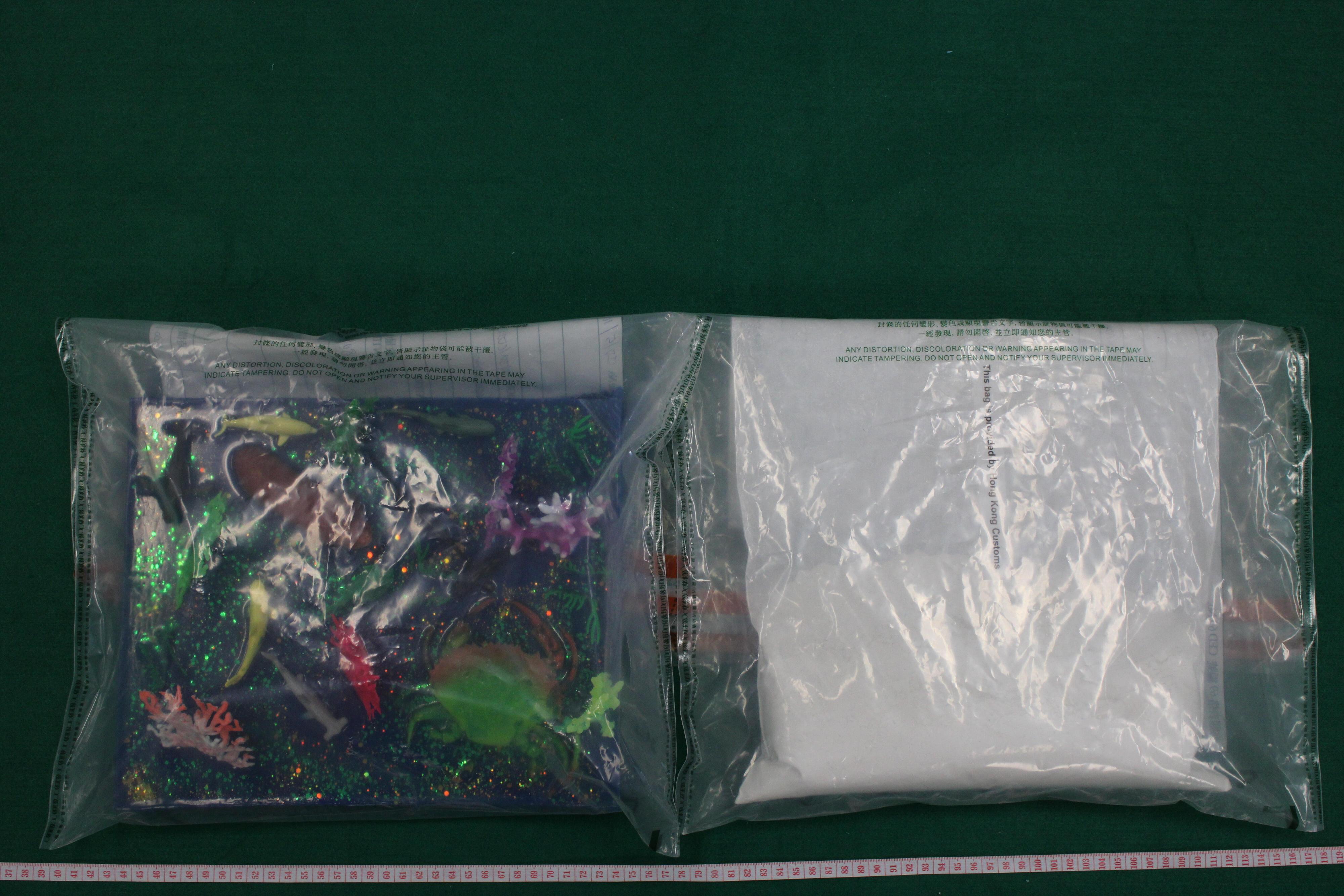Customs on that day examined a batch of air cargo consignment, declared as garments, arriving in Hong Kong from Thailand at the airport. Upon inspection, Customs officers found that there was a plastic ornament in one box of goods and seized the batch of suspected heroin inside the base of the plastic ornament. After a follow-up investigation, Customs officers today (June 1) mounted a controlled delivery operation and arrested a man, aged 49 and suspected to be connected with the case, in Hung Hom.