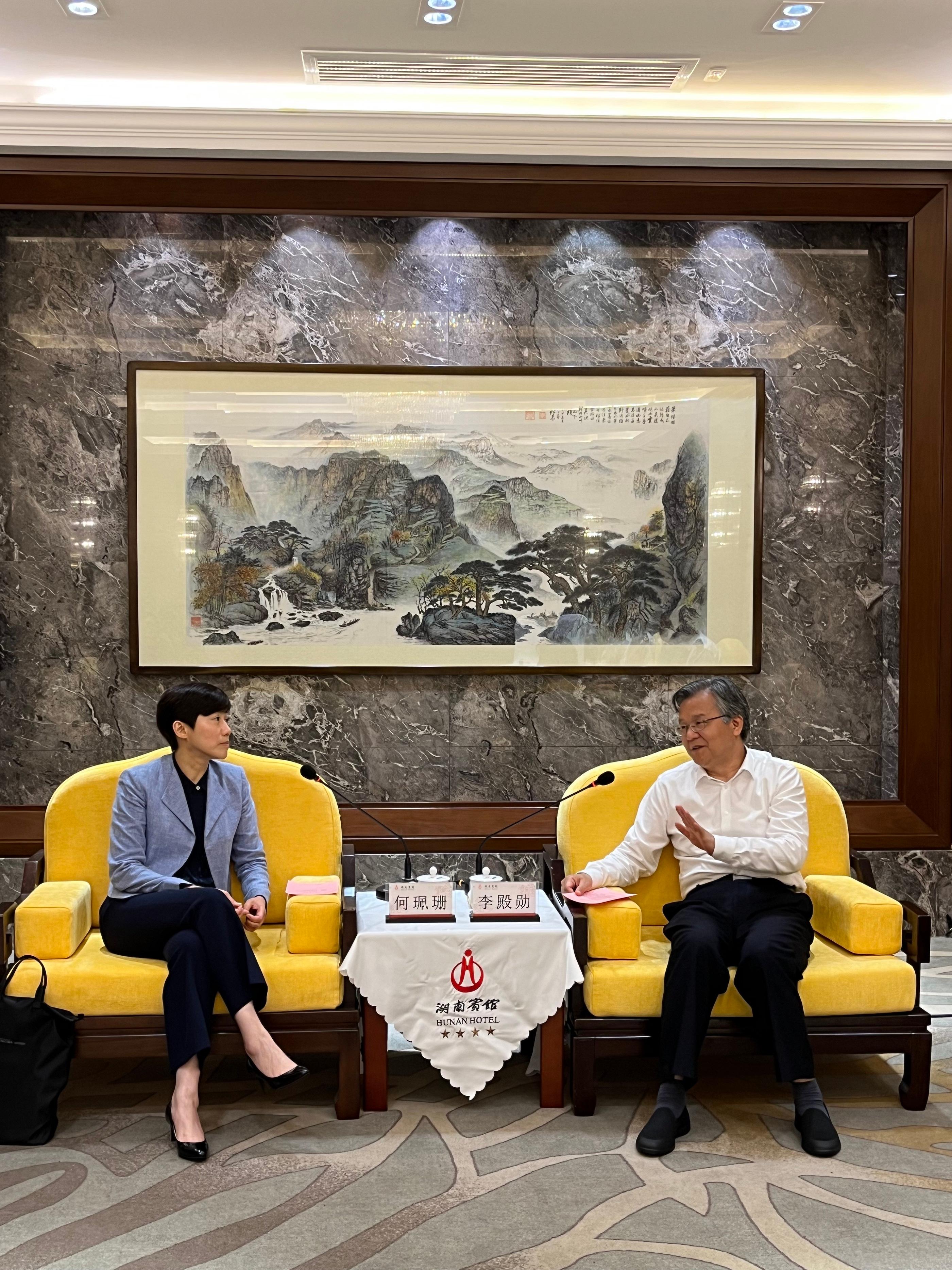 Ms Ho later called on the Executive Vice-Governor of Hunan Province, Mr Li Dianxun, and the Director General in Changsha Customs District, Mr Zhu Guangyao, respectively and expressed her gratitude for their dedicated support and co-ordination to extend the Scheme to Hunan. They also exchanged views on leveraging the development opportunities of the Guangdong-Hong Kong-Macao Greater Bay Area (GBA) and deepening the co-operation between the two Customs administrations. Ms Ho added that Hong Kong Customs proactively participates in the development of the GBA, and is committed to promoting the integration of logistics between the two places with the Mainland Customs. Making full use of the infrastructure and transportation networks of Hong Kong International Airport and the Hong Kong-Zhuhai-Macao Bridge will also strengthen intermodal transshipment, foster the development of cold chain logistics services, and promote Hunan's high-quality fresh products to the world.