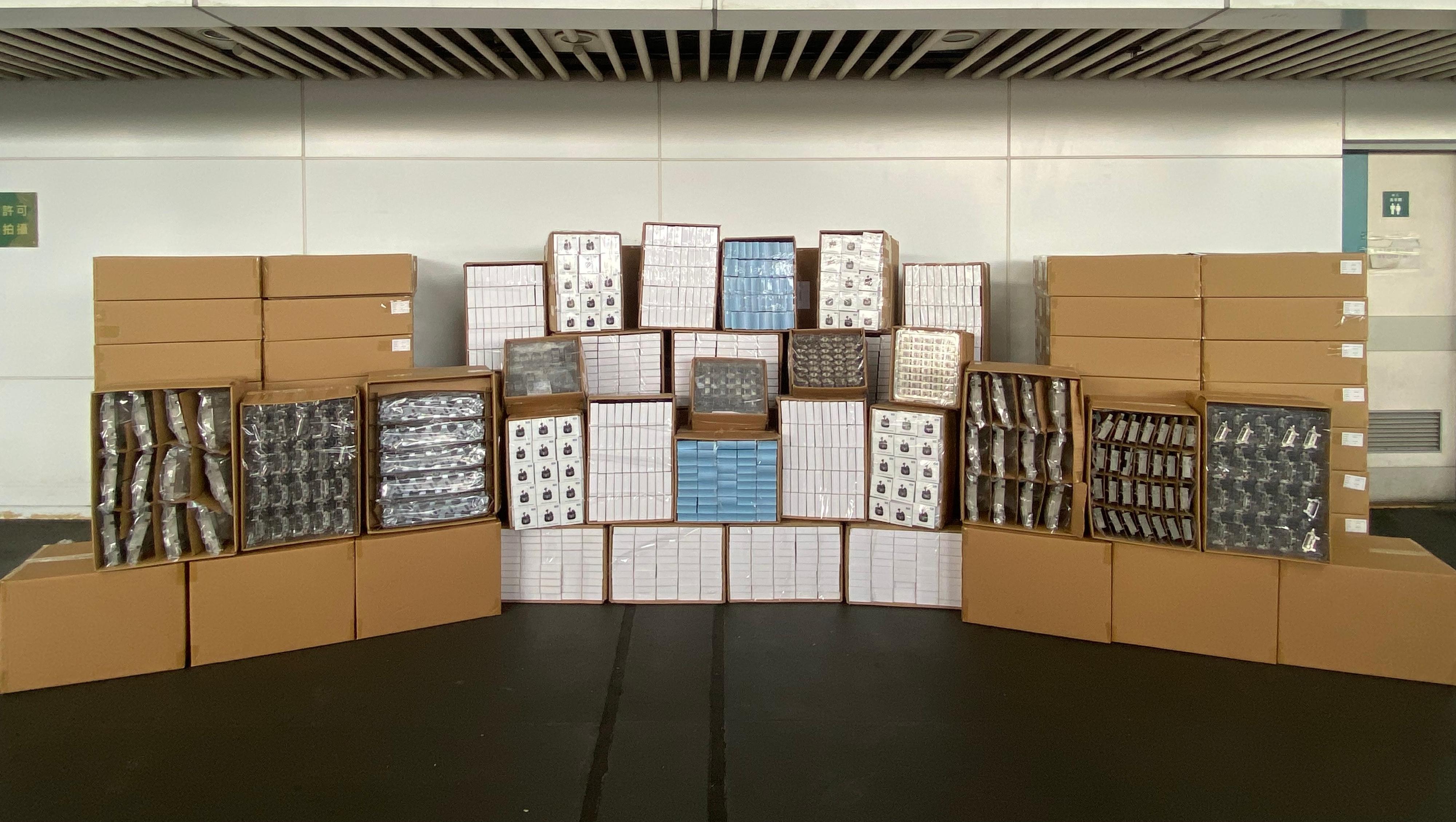 ​Hong Kong Customs yesterday (June 24) mounted an anti-smuggling operation at the Lok Ma Chau Control Point and detected a suspected smuggling case involving a cross-boundary goods vehicle. A batch of suspected smuggled goods, including about 8 000 sets of Bluetooth earbuds and about 28 000 pieces of printer parts, with a total estimated market value of about $720,000 was seized.