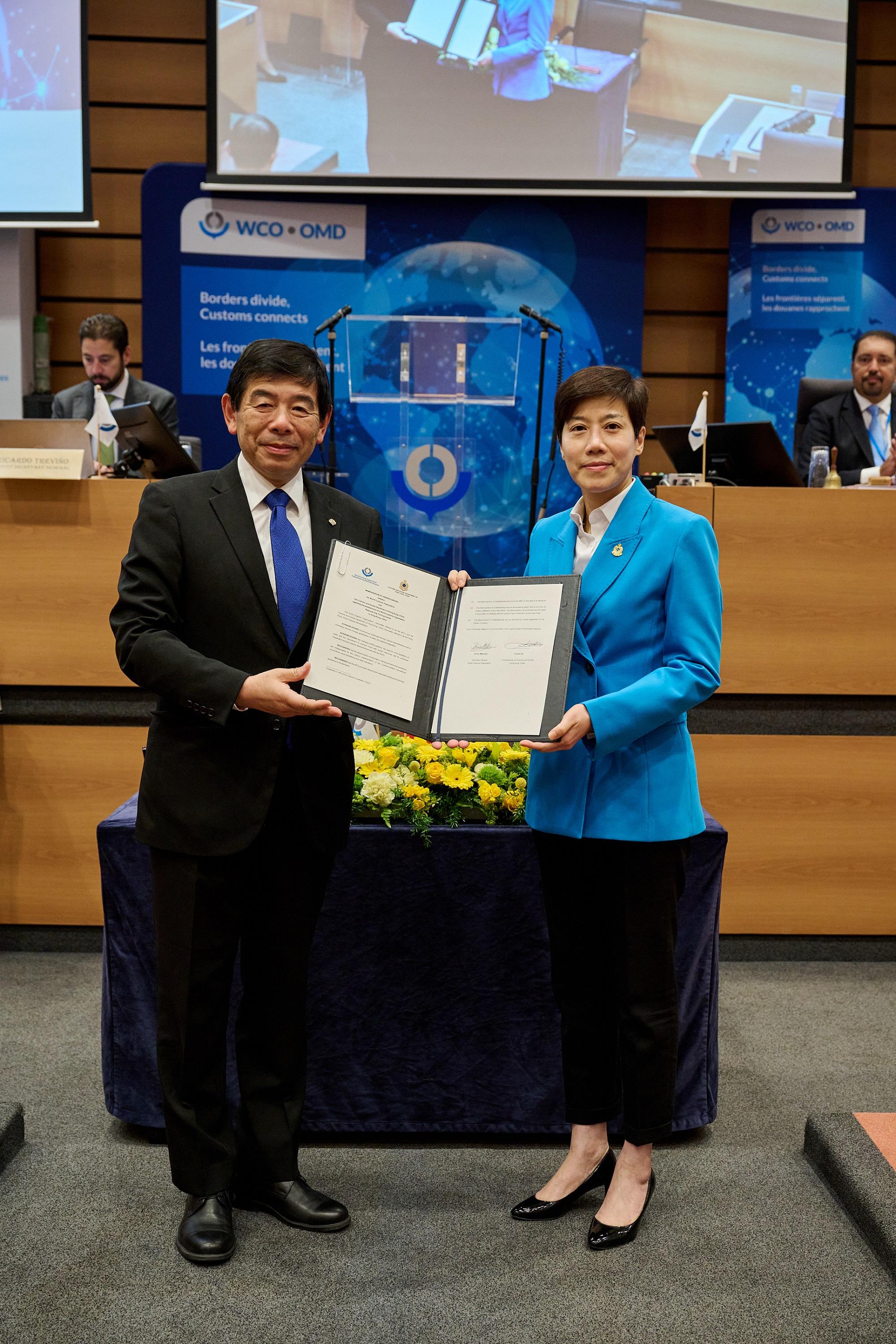 During the Sessions, Ms Ho signed the Memorandum of Understanding with the Secretary-General of the WCO, Dr Kunio Mikuriya, to confirm the establishment of a WCO Regional Dog Training Centre in Hong Kong, signifying a momentous step forward for Hong Kong Customs in leading canine training in the Asia-Pacific region. At the signing ceremony, Ms Ho said that as a pioneer in global customs canine training and law enforcement affairs centre, Hong Kong Customs is preparing at full steam for the WCO 6th Global Canine Forum to be held in March next year. This will be the first time for Hong Kong to host such major international event, and esteemed canine experts all over the world will be invited to participate.