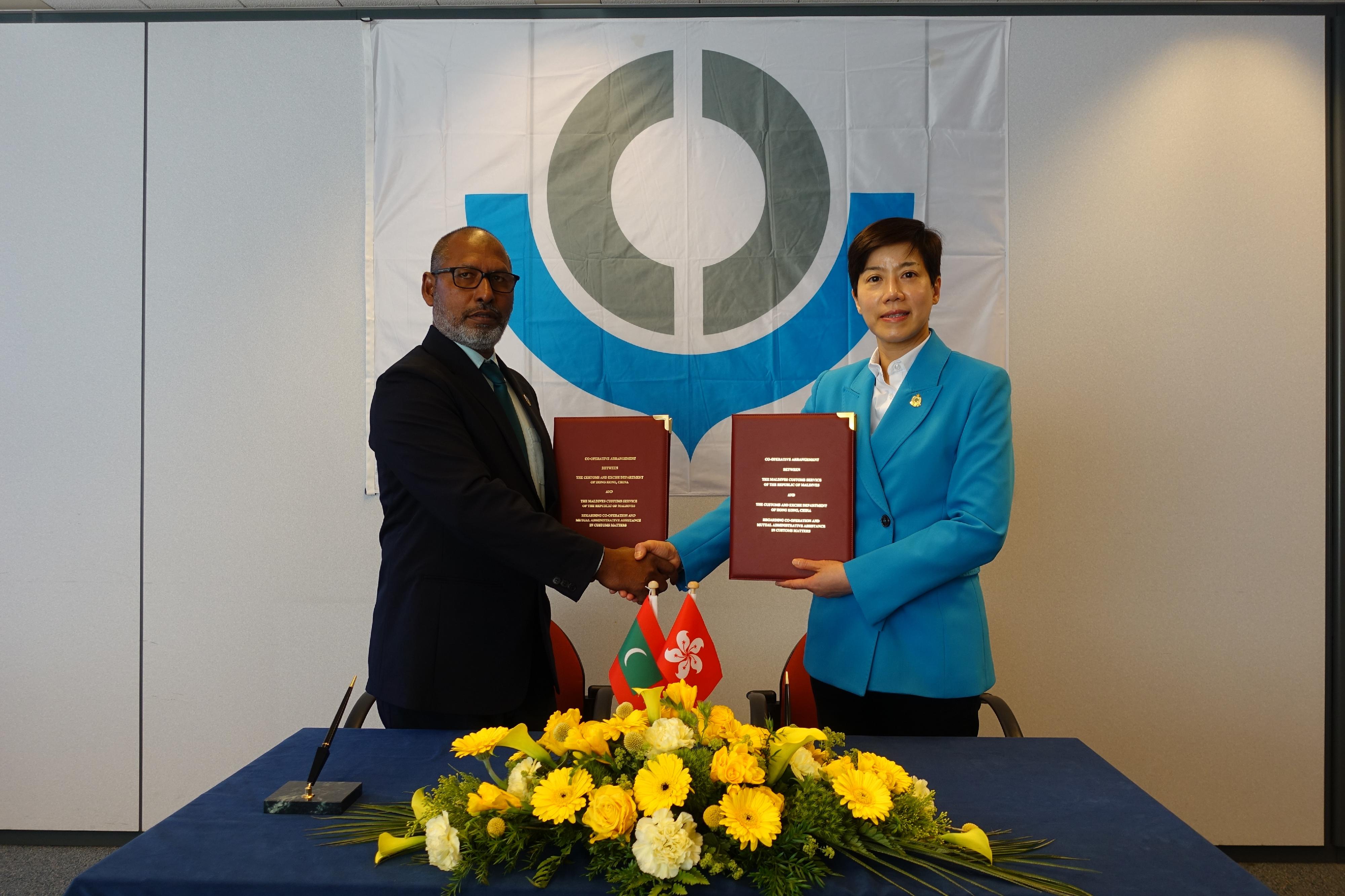 In addition, Ms Ho signed Customs Co-operative Arrangements with the Deputy National Superintendent of Customs of the National Superintendency of Customs and Tax Administration of the Republic of Peru, Ms Martha Elba Garamendi Espinoza, and the Commissioner General of the Maldives Customs Service of the Republic of Maldives, Mr Abdulla Shareef, on June 23 and 24 respectively, with the aim to strengthen intelligence exchanges and information sharing, crack down cross-boundary customs crimes, and facilitate trade.