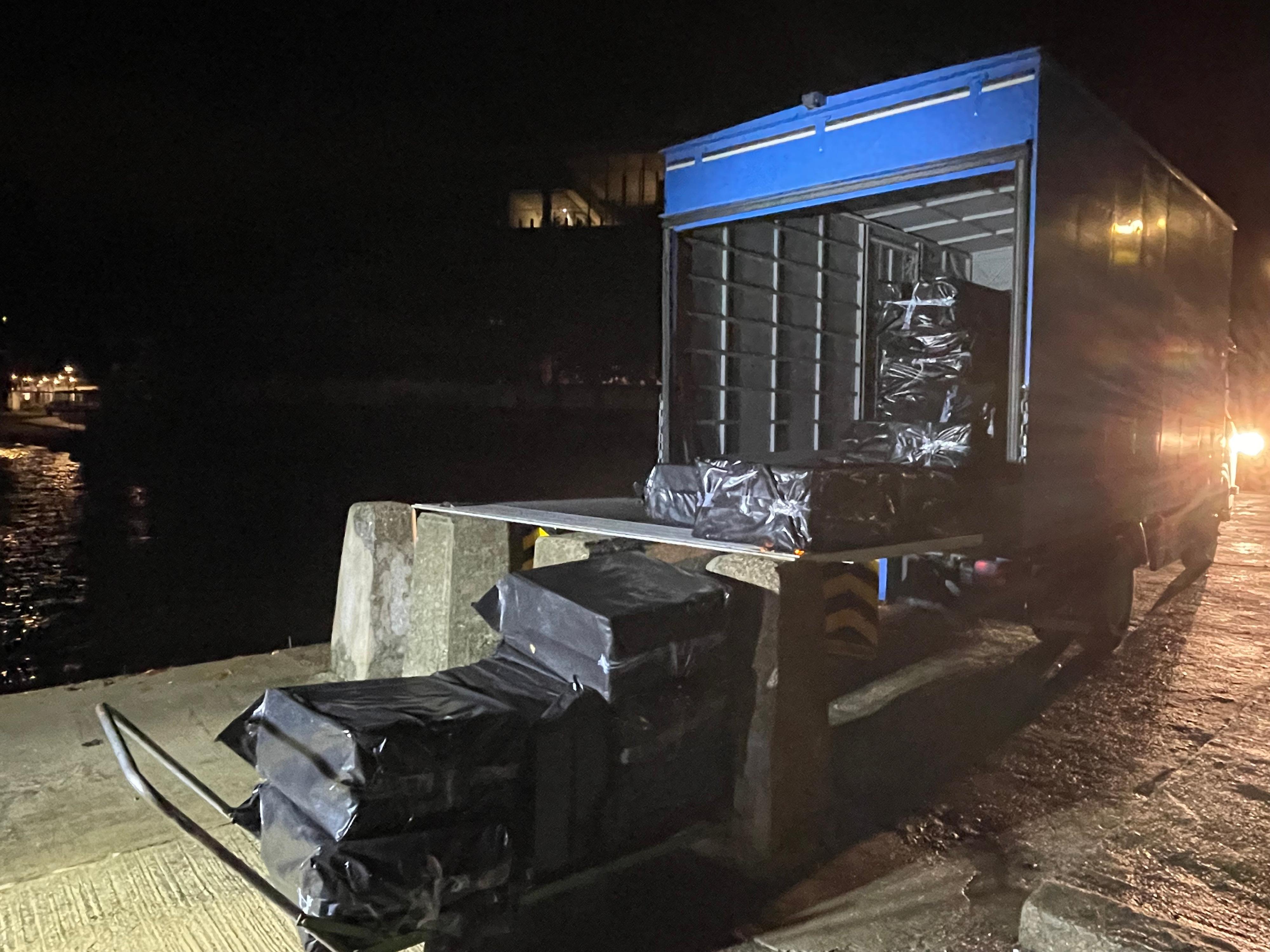 Customs conducted an anti-smuggling cigarette operation at St Stephen's Beach (South) Pier in Stanley early this morning and found several suspicious men moving a large number of carton boxes from a ship to a suspicious lorry at the seashore. They were suspected of participating in smuggling activities and officers then took action. When customs officers stepped forward to intercept, several men suspected of being involved in the case immediately jumped into the sea and fled. Customs officers eventually subdued and arrested five men, aged between 17 and 56. Upon inspection, customs officers seized the batch of suspected illicit cigarettes inside the lorry and near the pier, and the lorry suspected to be involved was detained.