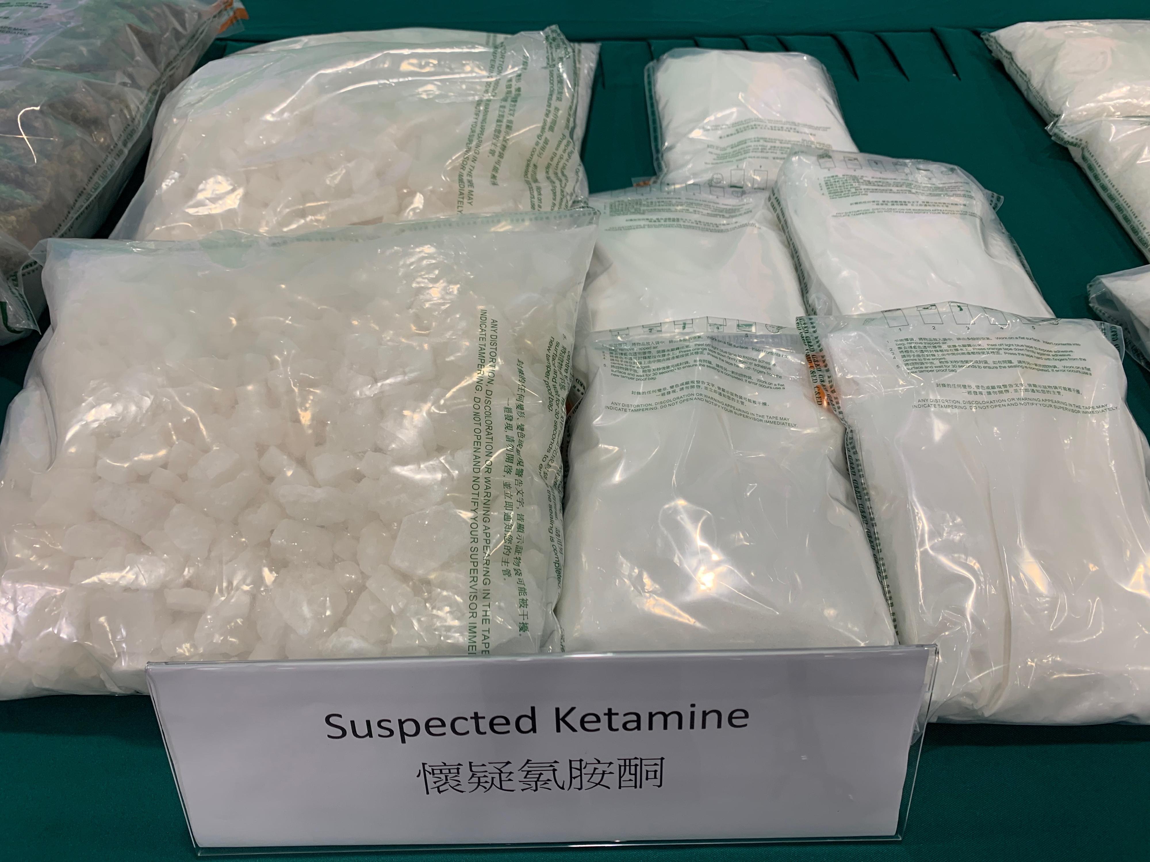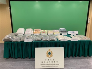 With the upward trend of drugs being smuggled through consolidated consignment, Customs, through risk assessment, conducted strikes and searches at local consolidator companies and examined suspicious parcels. In the operation, Customs detected 23 cases of drug trafficking and about 68 kilograms of suspected dangerous drugs were seized, including about 35kg of suspected cannabis-type dangerous drugs, about 22kg of suspected ketamine and about 11kg of suspected methamphetamine. The total estimated market value of the seizures was about $24 million. Two men suspected to be connected with the cases were arrested.